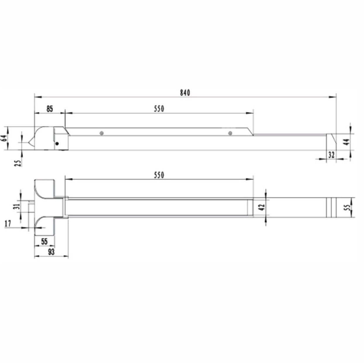 Barra Antipanico Horizaontal tipo PUSH DT-F1500RA para puertas metalicas, vidrio, madera. con certificacion UL y resistencia al fuego por 3 horas